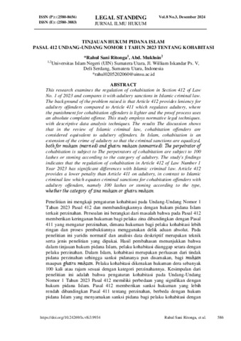 Ritonga, Rahul Sani (2024) Tinjauan Hukum Pidana Islam Pasal 412 Undang-Undang Nomor 1 Tahun 2023 Tentang Kohabitasi. LEGAL STANDING JURNAL ILMU HUKUM, 8 (3).