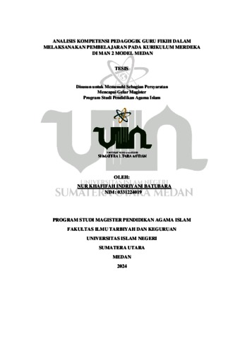 Batubara, Nur Khafifah Indriyani (2024) Analisis Kompetensi Pedagogik Guru Fikih Dalam Melaksanakan Pembelajaran Pada Kurikulum Merdeka di MAN 2 Model Medan. Masters thesis, UIN Sumatera Utara.