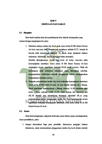 Pengaruh Media Pembelajaran Big Book Terhadap Kemampuan Membaca Permulaan Pada Mata Pelajaran Bahasa Indonesia Siswa Kelas II SD yang dilatarbelakangi bahwa kurangnya minat membaca pada siswa kelas II SD cukup memprihatinkan dan pada kegiatan pembelajaran yang berlangsung dikelas, siswa kurang antusias, sehingga masalah utama dalam penelitian ini adalah Apakah ada pengaruh media big book terhadap kemampuan membaca permulaan pada mata pelajaran bahasa indonesia siswa kelas II SD. Jenis penelitian ini adalah pra-eksperimen bentuk Pre-Test Post-Test Design yaitu sebuah eksperimen yang dalam pelaksanaannya hanya melibatkan satu kelas sebagai kelas eksperimen tanpa adanya kelas pembanding (kelas kontrol) yang bertujuan untuk mengetahui pengaruh media big book terhadap kemampuan membaca permulaan pada mata pelajaran bahasa indonesia siswa kelas II SD. Keberhasilan proses pembelajaran ditinjau dari aspek, yaitu: ketercapaian ketuntantasan hasil belajar Bahasa Indonesia siswa secara klasikal, Aktivitas siswa dalam mata pelajaran Bahasa Indonesia. Pembelajaran dikatakan berhasil jika aspek di atas terpenuhi. Teknik pengumpulan data yang digunakan adalah data skor perolehan hasil kemampuan membaca siswa yang dikumpulkan dengan menggunakan tes melalui membaca (observasi) dan soal pilihan berganda. Hasil analisis statistik deskriptif penggunaan media big book terhadap kemampuan membaca permulaan siswa positif, kemampuan membaca siswa dengan menggunakan media big book menunjukkan hasil belajar yang lebih baik dari pada sebelum diterapkan media big book. Hasil analisis statistik inferensial menggunakan rumus uji t, diketahui bahwa nilai yang diperoleh adalah 11,30 dengan frekuensi db = 20-1 = 19, pada taraf signifikansi 5% diperoleh =1,72. Jadi atau hipotesis nol ( ) ditolak dan hipotesis alternative ( ) diterima. Hal ini membuktikan bahwa ada Pengaruh Media Big Book Terhadap Kemampuan Membaca Permulaan Pada Mata Pelajaran Bahasa Indonesia Siswa Kelas II SD.