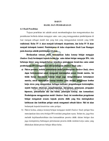 Pengaruh Model Pembelajaran Outdoor Study Terhadap Keterampilan Proses Sains Siswa Pada Pembelajaran IPA di Kelas IV Sekolah Dasar