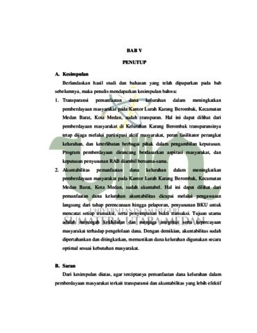 Nasution, Rina Halizah (2024) Analisis Transparansi Dan Akuntabilitas Dana Kelurahan (Studi Kasus Kantor Lurah Karang Berombak, Kecamatan Medan Barat, Kota Medan). Skripsi thesis, UIN Sumatera Utara Medan.