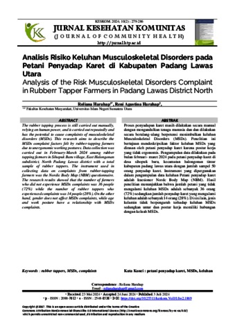 Harahap, Roliana (2024) Analisis Risiko Keluhan Musculoskeletal Disorders pada Petani Penyadap Karet di Kabupaten Padang Lawas Utara. JURNAL KESEHATAN KOMUNITAS (J O U R N A L O F C O M M U N I T Y H E A L T H).