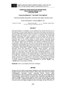 Rahmasari, Fanny Arya (2024) Hubungan Teman Sebaya dan Paparan Media Sosial Dengan Perilaku Fast Food Pada Siswa. MAHESA: MALAHAYATI HEALTH STUDENT JOURNAL, 4 (8).