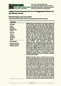 Sistem presensi merupakan sistem yang harus dimiliki oleh suatu perusahaan. Sistem presensi yang sedang berjalan pada perusahaan ini menggunakan sistem presensi sidik jari (Fingerprint). Karena hanya terdapat 1 buah alat presensi terjadi penumpukan karyawan yang ingin melakukan presensi. Hal ini membuat proses sistem presensi ini menjadi kurang efektif karena dapat membuat antrian sehingga terjadi keterlambatan pada saat proses presensi. Penelitian ini bertujuan untuk merancang dan membangun sebuah aplikasi presensi karyawan berbasis android dengan menggunakan metode lock gps yang akan mempermudah karyawan dalam melakukan presensi. Pada tahapan pengumpulan data, metode penelitian yang digunakan adalah metode kualitatif seperti observasi, wawancara dan studi pustaka. Metode pengembangan sistem yang digunakan adalah metode waterfall yang terdiri dari analisis kebutuhan, desain, implementasi, pengujian dan pemeliharaan sistem. Perancangan aplikasi berbasis android ini menggunakan kodular sebagai platform pengembangan aplikasi dan google spreadsheet sebagai tempat penyimpanan data. Hasil dari penelitian ini menghasilkan sebuah aplikasi presensi berbasis android yang di lengkapi dengan metode lock gps dan fitur anti fake location dimana karyawan harus benar benar berada di wilayah lokasi pekerjaan pada saat melakukan presensi dan karyawan tidak dapat melakukan kecurangan jika ingin memanipulasi lokasi menggunakan aplikasi fake gps atau sejenisnya. Di harapkan penelitian ini dapat menjadi referensi untuk penelitian berikutnya di masa yang akan mendatang.