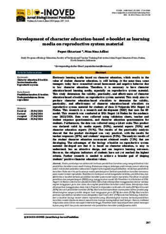 Oktariani, Puput (2024) Development of character education-based e-booklet as learning media on reproductive system material. BIO-INOVED : Jurnal Biologi-Inovasi Pendidikan, 6 (2).