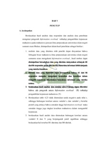 Penelitian ini dilatarbelakangi oleh masifnya penyebaran informasi di media internet yang tersedia dalam berbagai format mulai dari teks, gambar, suara, maupun video. Dimana kehadiran informasi yang begitu cepat dan dalam jumlah yang banyak tentunya dapatmembuat individu cenderung kewalahan untuk mengikutii informasi yang terbaru, dimana hal tersebut dapat mengakibatkan fenomena Information overload. Rumusan masalah dari penelitian ini adalah bagaimana pengaruh information overload terhadap pengambilan keputusan mahasiswa pada mahasiswa jurusan ilmu perpustakaan universitas islam negeri sumatera utara. Adapun tujuan dari penelitian ini adalah untuk mengetahui pengaruh Information overload terhadap pengambilan keputusan mahasiswa jurusan ilmu perpustakaan universitas islam negeri sumatera utara medan. Penelitian ni menggunakan metode pendekatan kuantitatif dengan metode deskriptif dengan tekhnik pengambilan sampel dengan Teknik random sampling dengan jumlah responden sebanyak 86 sampel dari populasi sebanyak 633 dari mahasiswa jurusan ilmu perpustakaan universitas islam negeri sumatera utara. Teknik pengumpulan data yang digunakan pada penelitian ini adalah berupa kuesioner, analisis data secara statistic menggunakan alat bantu Microsoft Excel dan SPSS versi 29. Hasil penelitian menunjukkan bahwa berdasarkan uji korelasi dan analisis regresiterdapat pengaruh positif signifikan antara Information overload terhadap pengambilan keputusan mahasiswa, dimana semakin tinggi angka terjadinya Information overload maka semakin sulit pengambilan keputusan yang akan dilakukan.
