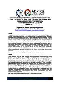 The purpose of writing this article is to determine the effectiveness of individual counseling services using the Cognitive Behavior Therapy (CBT) approach through self-instruction techniques in reducing learning difficulties at Madrasah Aliyah Negeri 1 Medan. Quantitative research is guided by a pre-test plan and a single-group pre-test-post-test plan. On the analyst's learning difficulties scale, 26 of the 28 statement items are used in a test of legitimacy and firm quality. The results are considered substantial if the determined r exceeds the table r value, namely 0.2329 at a 5% level of significance. For the reliability test, Cronbroach alpha data was collected with a Cronbroach Alpha value greater than 0.05 (0.999 > 0.05). The research population at Madrasah Aliyah Negeri 1 Medan includes more than three classes in class X (ten), namely classes X5, X7, and X8. Purposive testing techniques were used to select five students with high levels of learning difficulties from 110 students in each of the three classes. The Wilcoxon Marked Positions Test was used to test the data. The results of this research show that the significance value is asymptotic. Sig(2-follow) values greater than 0.05 or 0.005 It is reasonable to assume that independent, individual tutoring services are effective in overcoming student learning difficulties
