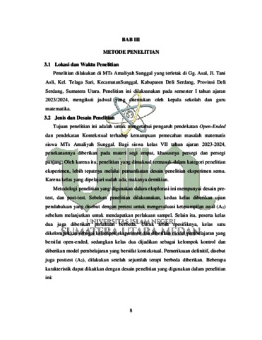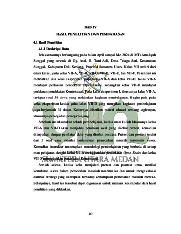Hrp, Afifah Hartika (2024) Pengaruh Pendekatan Open-Ended Dan Pendekatankontekstual Terhadap Kemampuan Pemecahan Masalahmatematis Siswa Mts Amaliyah Sunggal. Skripsi thesis, UIN Sumatera Utara.