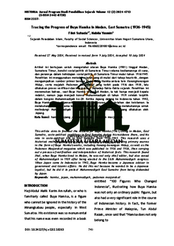 Suhada, Fikri (2024) Tracing the Progress of Buya Hamka in Medan, East Sumatra (1936-1945). HISTORIA: Jurnal Program Studi Pendidikan Sejarah.