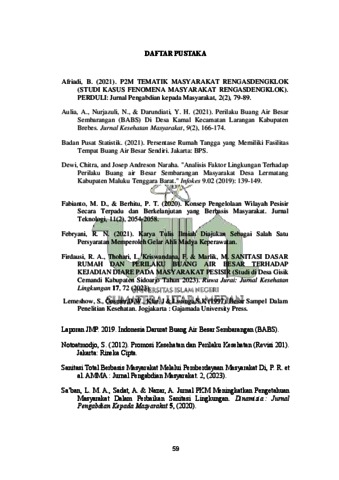 Afifa, Erva Ahsana (2024) Hubungan Pengetahuan dan Sikap Masyarakat Terhadap Perilaku Buang Air Besar Sembarangan di Kawasan Pesisir Pantai di Desa Bagan Kuala Kecamatan Tanjung Beringin. Skripsi thesis, UIN Sumatera Utara.