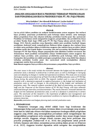 Syahdani, Wira (2024) Analisis Anggaran Biaya Produksi Terhadap Perencanaan dan Pengendalian Biaya Produksi Pada Pt. Pd. Paja Pinang. Jurnal Analisis dan Perkembangan Ekonomi, 8 (6).