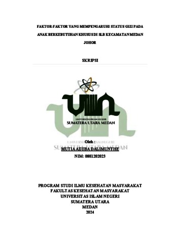 Dalimunthe, Mutia Azuba (2024) Faktor-Faktor Yang Mempengaruhi Status Gizi Pada Anak Berkebutuhan Khusus Di SLB Kecamatan Medan Johor. Diploma thesis, UIN Sumatera Utara.