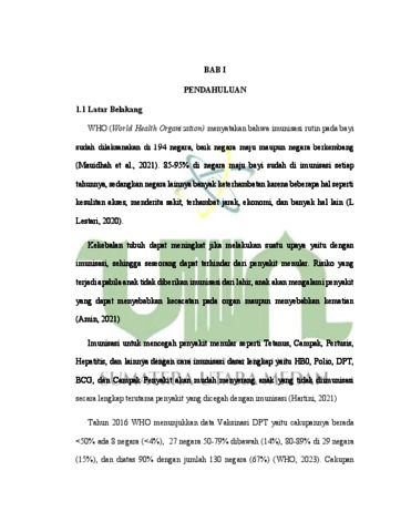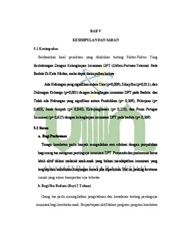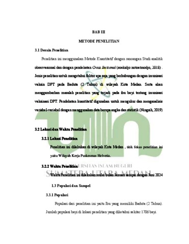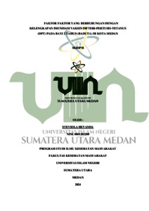 Hevanda, Steviola (2024) Faktor Faktor Yang Berhubungan Dengan Kelengkapan Imunisasi Vaksin DifteriPertusis-Tetanus ( DPT ) Pada Bayi 2 Tahun (BADUTA) Di Kota Medan. Diploma thesis, UIN Sumatera Utara.