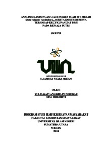 Siregar, Yuliawati Anggraini (2024) Analisis Kandungan Gizi Cookies Buah Bit Merah (Beta vulgaris Var.Rubra L.) Serta Kontribusinya Terhadap Kecukupan Zat Besi Pada Remaja Putri. Diploma thesis, UIN Sumatera Utara.