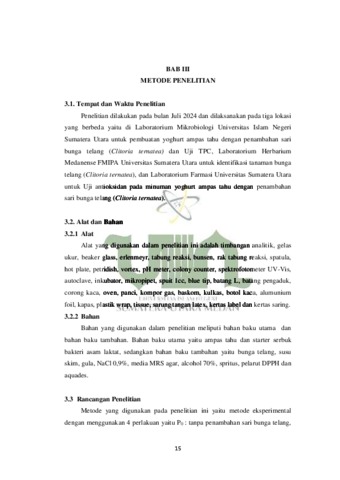 ALFIRA, DELLA (2024) Aktivitas Bakteri Asam Laktat Dan Kadar Antioksidan Pada Yoghurt Ampas Tahu Dengan Penambahan Sari Bunga Telang (Clitoria Ternatea). Skripsi thesis, UIN Surmatra Utara Medan.