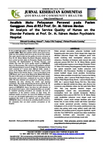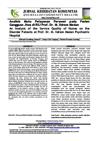 Gemirlarng Arhmard, Zirdrartul Analisis Mutu Pelayanan Perawatan pada Pasien Gangguan Jiwa di RSJ Prof. Dr. M. Ildrem Medan. Jurnal Kesehatan Komunitas.