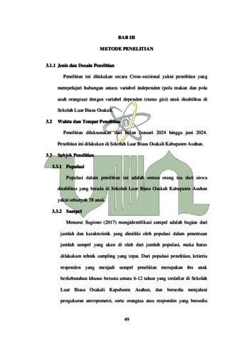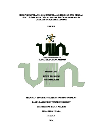 TRI WANI, RINDY (2024) Hubungan Pola Makan Dan Pola Asuh Orang Tua Dengan Status Gizi Anak Disabilitas Di Sekolah Luar Biasa Osakali Kabupaten Asahan. Skripsi thesis, UIN Surmatra Utara Medan.