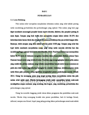 Bahri, Sauqani Yusril (2024) Analisis Peran Orang Tua Dalam Membentuk Kebiasaan Makan Sehat Di SD Swasta Waladun Shalih. Diploma thesis, UIN Sumatera Utara.