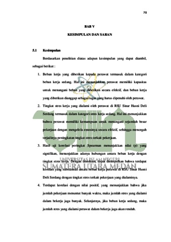 Stres dalam bekerja sering terjadi saat individu merasa beban kerja yang ditanggungnya cukup berat. Adapun beberapa jenis gejala stres berupa gejala psikologis seperti kecemasan, kebingungan, dan mudah tersinggung, gejala fisiologis seperti meningkatnya denyut jantung, tekanan darah, serta hormon stres, dan gejala perilaku seperti menunda dan menghindari pekerjaan. Tujuan dalam penelitian ini untuk melihat tingkatan stres yang dialami perawat di RSU Sinar Husni Deli Serdang. Penelitianini menggunakanmetodekuantitatif dengan pendekatan cross sectional. Populasi dalam penelitian ini sebanyak 70 orang dengan sampel yang diambil sebanyak 42 orang menggunakanteknik pengambilan sampel Proportionate Stratified Random Sampling. Hasil penelitian ini ditemukan 5 orang (11,9%) mengalami beban kerjakategorirendah, 26 orang (61,9%) mengalami beban kerjakategorisedang, dan 11 orang (26,2%) mengalami beban kerjakategoritinggi. Streskerjakategori rendah sebanyak5orang(11,9%)dan stres kerja kategori sedang sebanyak 37 orang (88,1%). Dengan nilai signifikan (p) antara beban kerja dengan stres kerja adalah 0,037 atau p ≤ 0,05. Dari hasil penelitian tersebut terdapat hubungan dengan nilai positif yang berarti jika beban kerja tinggi, maka stres kerja juga tinggi. Begitu pula sebaliknya jika beban kerja rendah maka stres kerja juga akan rendah.