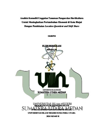 HERMAYANI, PUTR (2024) Analisis Komoditi Unggulan Tanaman Pangan dan Hortikultura Untuk Meningkatkan Pertumbuhan Ekonomi di Kota Binjai Dengan Pendekatan Location Quentient and Shift Share. Skripsi thesis, UIN Surmatra Utara Medan.