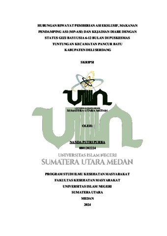 Purba, Nanda Putri (2024) Hubungan Riwayat Pemberian ASI ekslusif, Makanan Pendamping ASI (MP-ASI), dan kejadian diare dengan Status Gizi Bayi Usia 6-12 Bulan di Puskesmas Tuntungan, Kecamatan Pancur Batu, Kabupaten Deli Serdang. Skripsi thesis, UIN Sumatera Utara Medan.