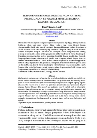 Yolanda, Putri (2024) Eksplorasi Etnomatematika Pada Artefak Peninggalan Sejarah Di Museum Daerah Kabupaten Langkat. Euclid.