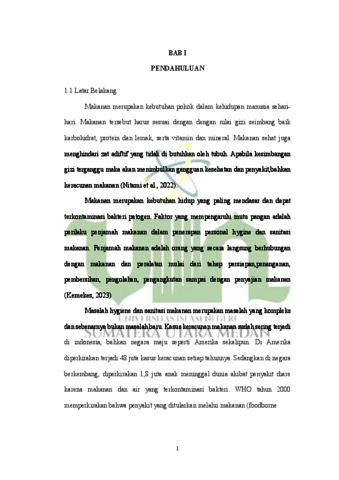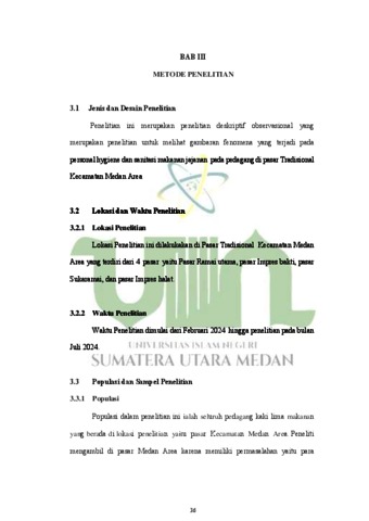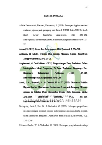 SUFA ZEIN DALIMUNTHE, WIRDAH (2024) Gambaranpersonal Hygiene Dansanitasi Makanan Jajanan Pada Pedagang Di Pasar Tradisional Wilayah Kecamatan Medan Area. Skripsi thesis, UIN Surmatra Utara Medan.
