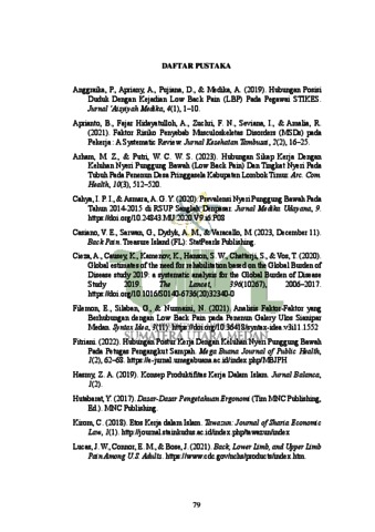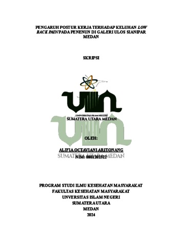 Aritonang, Alifia Octaviani (2024) Pengaruh Postur Kerja Terhadap Keluhan Low Back Pain Pada Penenun di Galeri Ulos Sianipar Medan. Diploma thesis, UIN Sumatera Utara.