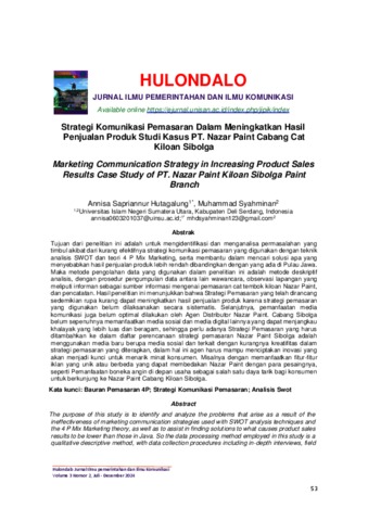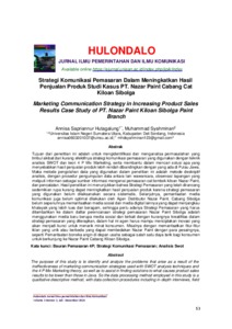 Sapriannur Hutagalung, Annisa Strategi Komunikasi Pemasaran Dalam Meningkatkan Hasil Penjualan Produk Studi Kasus PT. Nazar Paint Cabang Cat Kiloan Sibolga. Jurnal Ilmu pemerintahan dan Ilmu Komunikasi.