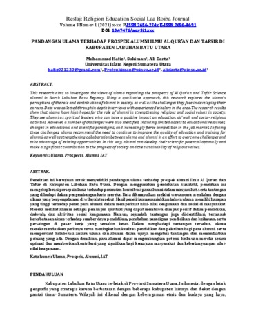 Pandangan Ulama Terhadap Prospek Alumni Ilmu Al Qur’an Dan Tafsir Di Kabupaten Labuhan Batu Utara