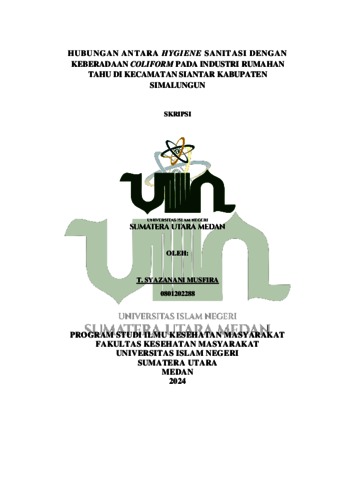 Musfira, T. Syazanani (2024) Hubungan Antara Hygiene Sanitasi Dengan Keberadaan Coliform Pada Industri Rumahan Tahu Di Kecamatan Siantar Kabupaten Simalungun. Diploma thesis, UIN Sumatera Utara.
