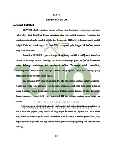 Marpaung, Nurul Hasanah (2024) Efektivitas Peran Bkpaksi Sebagai Mediator Hukum Dalam Problem Rumah Tangga (Studi di BKPAKSI Sumut). Skripsi thesis, UIN Sumatera Utara Medan.