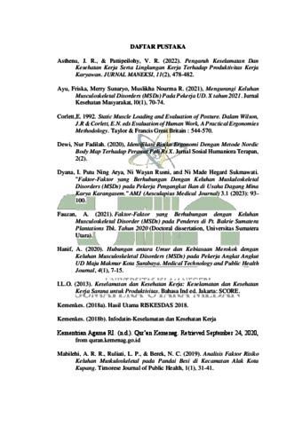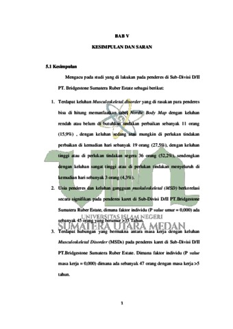 Hampir semua pekerjaan akan beresiko menimbulkan musculoskeletal disorder (MSDs). Prevalensi penyakit MSDs di indonesia berdasarkan diagnosis yang pernah di lakukan oleh tenaga kesehatan yaitu 11,9% dan berdasarkan diagnosis atau gejala yaitu 24,7%. Penderes di Sub-Divisi D/II PT.BSRE juga mengalami keluhan musculoskeletal seperti nyeri , pegal, kesemutan, kaku pada leher, bahu bagian atas, tangan, pinggang, punggung bagian bawah, serta pegal pada bagian kaki. Penelitian ini bertujuan untuk mengetahui faktor-faktor apa saja yang berhubungan dengan keluhan musculoskeletal disorder (MSDs) pada penderes di Sub-Divisi D/II PT. Bridgestone Sumatera Ruber Estate . Penelitian ini merupakan penelitian kuantitatif dengan menggunakan pendekatan cross sectional. Instrumen yang di gunakan yaitu kuesioner dan observasi langsung . Sampel penelitian ini berjumlah 69 orang . Hasil penelitian ini menunjukan ada hubungan dengan umur,masa kerja, dan sikap kerja dengan nilai p-value=0,000 (p <0,05), dan berhubungan dengan kebiasaan merokok p-value=0,012 (p <0,05). Variabel yang tidak berhubungan dengan keluhan musculoskeletal disorder (MSDs) yaitu lama kerja dimana variabel ini tidak dapat di gambarkan karena memiliki nilai yang konstan sehingga hubungan dengan MSDs tidak dapat di buktikan. Saran bagi peneliti untuk perusahaan yaitu memberikan arahan kepada penderes untuk melakukan streatching atau peregangan ringan sebelum bekerja dan ketika pada saat bekerja 2 jam sekali selama 5 menit guna memberikan kenyamanan dan mengurangi nyeri yang di rasakan.