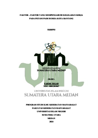 TEGAR, FAHMI (2024) Faktor – Faktor Yang Mempengaruhi Kelelahan Kerja Pada Petani Padi Di Desa Kota Rantang. Skripsi thesis, UIN Surmatra Utara Medan.