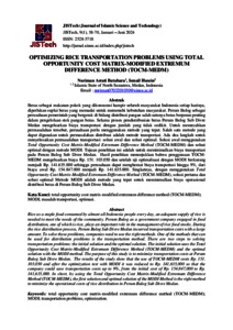 Batubara, Nuriman Astuti (2024) Optimizing Rice Transportation Problems Using Total Opportunity Cost Matrix-Modified Extremum Difference Method (TOCM-MEDM). JISTech (Journal of Islamic Science and Technology).