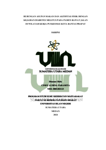 Paramita, Cindy Audina (2024) Hubungan Asupan Makan dan Aktifitas Fisik Dengan Kejadian Diabetes Melitus Pada Pasien Rawat Jalan di Wilayah Kerja Puskesmas Kota Rantauprapat. Skripsi thesis, UIN Sumatera Utara Medan.