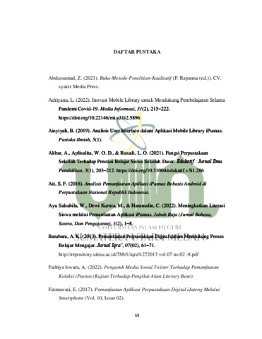 Batubara, Nurlaila Qodri (2024) Analisis Kendala Bagi Pengguna Dalam Pemanfaatan Aplikasi iPusnas Sebagai Sumber Informasi Siswa di SMK Gelora Jaya Nusantara Medan. Skripsi thesis, UIN Sumatera Utara Medan.