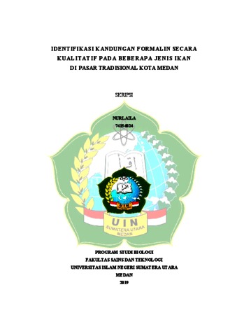 Nurlaila, Nurlaila (2019) Identifikasi Kandungan Formalin Secara Kualitatif Pada Beberapa Jenis Ikan Segar di Pasar Tradisional Kota Medan. Skripsi thesis, UIN Sumatera Utara Medan.