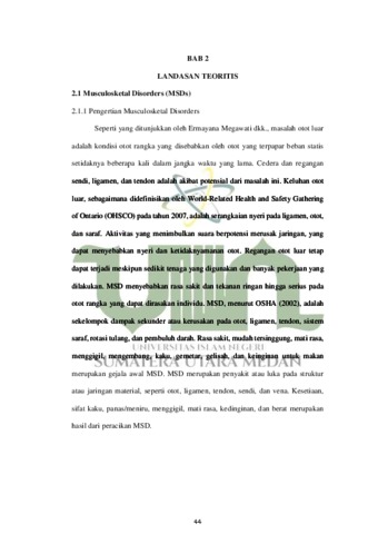 Hubungan Postur Kerja Dengan Keluhan Musculoskeletal Disorders Dalam Proses Produksi Di Pks Pagar Merbau Ptpn Iv Regional 2 Lubuk Pakam, Deli Serdang Sumatera Utara
