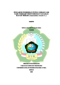Bara, Novia Anggreyni Batu (2020) Pengaruh Pemberian Pupuk Limbah Cair Tahu terhadap Pertumbuhan Tanaman Bayam Merah (Amaranthus triccolor L.). Skripsi thesis, UIN Sumatera Utara Medan.
