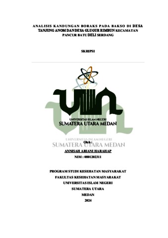 Harahap, Annisah Ariani (2024) Analisis Kandungan Boraks pada Bakso di Desa Tanjung Anom dan Desa Glugur Rimbun Kecamatan Pancur Batu Deli Serdang. Skripsi thesis, UIN Sumatera Utara Medan.