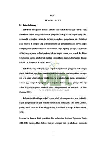 Khairunnisa, Rizki (2024) Pengaruh Tekanan Panas Terhadap Keluhan Dehidrasi Pada Pekerja Bagian Produksi di Pt Kreasi Lutvi Sejahtera. Diploma thesis, UIN Sumatera Utara.