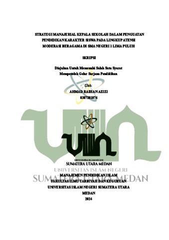 Azizi, Ahmad Raihan (2024) Strategi Manajerial Kepala Sekolah Dalam Penguatan Pendidikan Karakter Siswa Pada Lingkup Atensi Moderasi Bergama di SMA Negeri 1 Lima Puluh. Diploma thesis, UIN Sumatera Utara.
