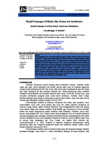 Lingga, Susanti (2024) Masjid Perjuangan 45 di Kota Medan: Sejarah dan Arsitekturnya. Santhet: (Jurnal Sejarah, Pendidikan Dan Humaniora).