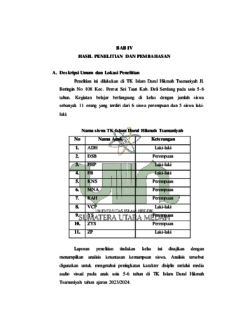 Addina Harahap, Masyitah (2024) Meningkatkan Karakter Disiplin Anak Usia 5-6 Tahun Melalui Media Audio Visual Di Tk Islam Darul Hikmah Tsamaniyah Tembung. Skripsi thesis, UIN Surmatra Utara Medan.