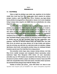 Toko Graha Phone Service, yang bergerak dalam penjualan dan perbaikan perangkat handphone, menghadapi berbagai tantangan dalam pengelolaan stok dan distribusi spare part. Masalah yang dihadapi meliputi pengelolaan stok yang tidak optimal, yang dapat menyebabkan kelebihan atau kekurangan stok, distribusi yang tidak terkoordinasi, serta informasi barang antara toko dan pemasok yang kurang maksimal. Untuk mengatasi masalah ini, diperlukan implementasi Supply Chain Management (SCM) berbasis web. SCM akan membantu mengelola aliran barang, informasi, dan jasa secara efisien dari pemasok hingga konsumen. Penelitian ini bertujuan mengembangkan sistem SCM berbasis web untuk mengelola stok spare part secara digital, memungkinkan integrasi inventaris toko dengan manajemen stok pemasok secara real-time, serta membangun komunikasi yang lebih baik antara toko dan supplier. Diharapkan, sistem ini dapat mengoptimalkan manajemen rantai pasok dan meningkatkan kepuasan pelanggan melalui pelayanan yang lebih baik.