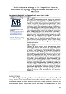 Efendi, Laiyinna Misqha (2024) The Development Strategy of the Dragon Fruit Farming Business in Sei Sijenggi Village Reviewed from The Side of Maslahah. JMB: Jurnal Manajemen Bisnis.