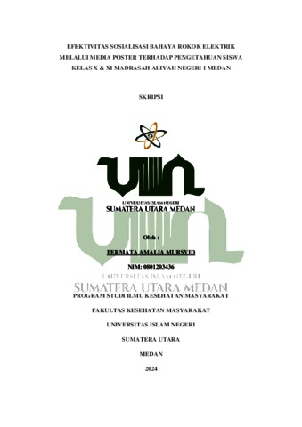 Mursyid, Permata Amalia (2024) Efektivitas Sosialisasi Bahaya Rokok Elektrik Melalui Media Poster Terhadap Pengetahuan Siswa Madrasah Aliyah Negeri 1 Medan. Diploma thesis, UIN Sumatera Utara.