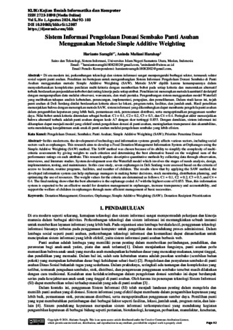 Saragih, Harianto (2024) Sistem Informasi Pengelolaan Donasi Sembako Panti Asuhan Menggunakan Metode Simple Additive Weighting. KLIK: Kajian Ilmiah Informatika dan Komputer.