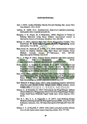 Safira, Sheila (2024) Sistem Pakar Diagnosis Tingkat Stres pada Korban Bullying dengan Metode Forward Chaining. Skripsi thesis, UIN Sumatera Utara Medan.